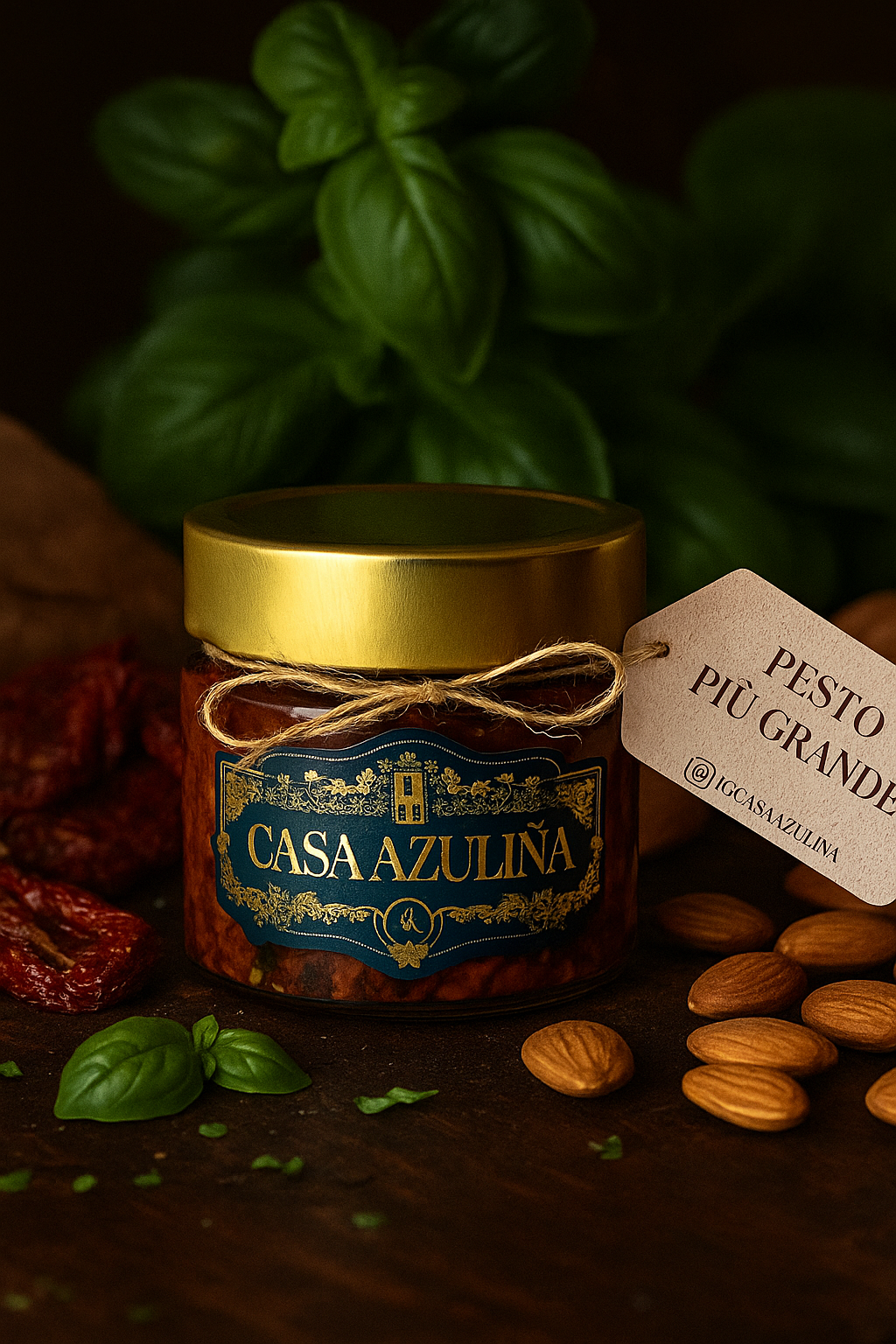 Pesto de tomates secos com amêndoas tostadas artesanal.